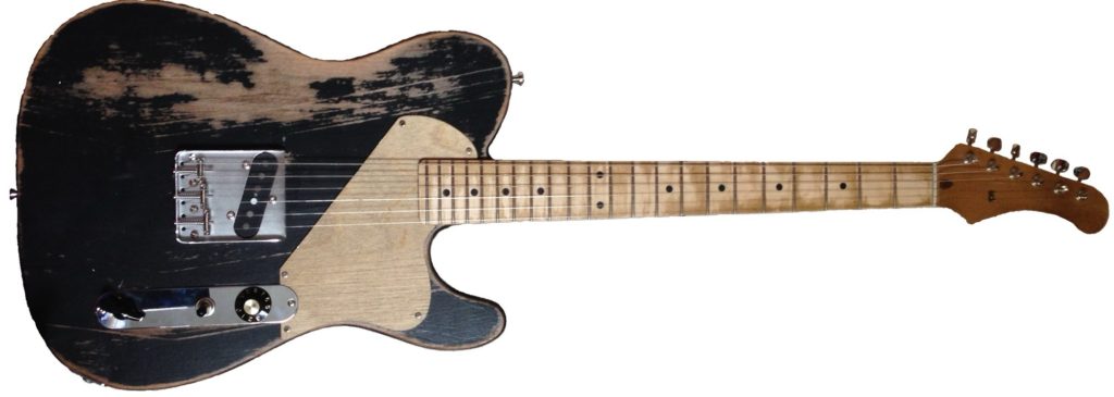 メイプル指板タイプのギターは黒の塗装を敢えてレリック仕様を目指して、というのも綺麗に仕上げるより余程ごまかしも効いてそれっぽく見えてしまうのだ。